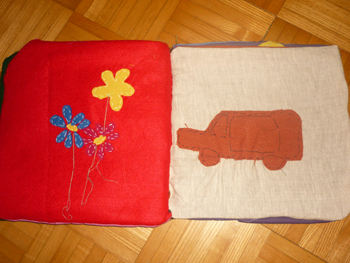 | Im Textilunterricht der Mädchen der 6a fertigten wir zum Thema "Mein schönstes Erlebnis" textile Tagebücher an. Am Anfang machten wir eine Phantasiereise, in der wir noch mal zu unserem schönsten Erlebnis unseres Lebens flogen. Dort erlebten wir den Moment noch mal und hielten unsere Gedanken schriftlich fest. Danach überlegten wir, wie wir das Erlebnis für die Ewigkeit festhalten können. Wir fertigten textile Seiten an, auf die wir unsere Erlebnisse darstellten. Dafür benutzten wir Stickereien, Häkeleien, Applikationen und die Technik Trockenfilzen. Nachdem die Seiten fertig waren, nähten wir sie so aufeinander, dass es Doppelseiten ergaben. Anschließend nähten wir alle Seiten zusammen, sodass es zu einem Buch wurde. Ein Buchumschlag machte dann unser textiles Tagebuch perfekt, wie man auf den Fotos sehen kann. |